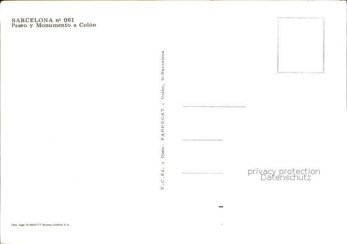 Barcelona Cataluna Paseo y Monumento a Colon Vista aerea postalisch nicht gelaufen Erhaltung siehe scans