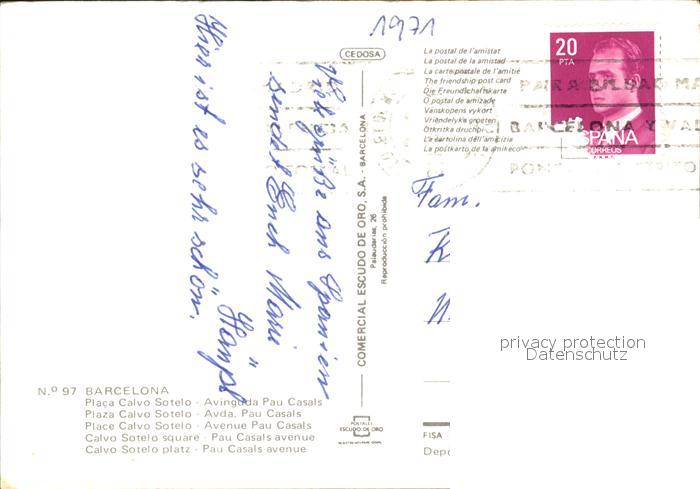 old postcard Barcelona Cataluna Placa Calvo Sotelo postalisch gelaufen Erhaltung siehe scans
