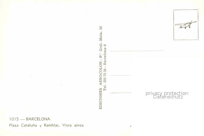 Barcelona Cataluna Plaza Cataluna y Ramblas vista aerea postalisch nicht gelaufen Erhaltung siehe scans [FriedD77]