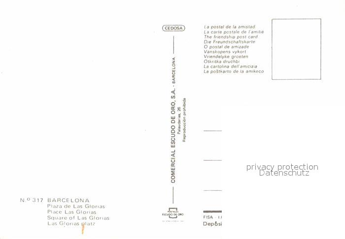 Barcelona Cataluna Plaza de Las Glorias postalisch nicht gelaufen Erhaltung siehe scans [WerneD78]