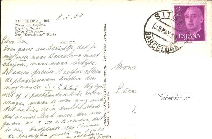 old postcard Barcelona Cataluna Plaza Espana postalisch gelaufen Erhaltung siehe scans