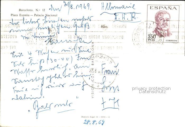 old postcard Barcelona Cataluna Plaza Espania Palacio Nacional postalisch gelaufen Erhaltung siehe scans