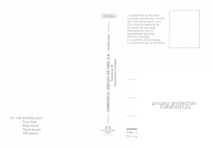 Barcelona Cataluna Plaza Real postalisch nicht gelaufen Erhaltung siehe scans [KathaD81]
