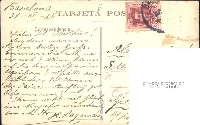 old postcard Barcelona Cataluna Plaza Real Palmas postalisch gelaufen Erhaltung siehe scans
