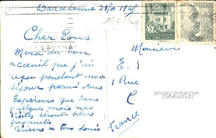 alte Postkarte Barcelona Cataluna Plaza Teluan y Avenida Jose` Antonio Primo de Rivera postalisch gelaufen Erhaltung siehe scans