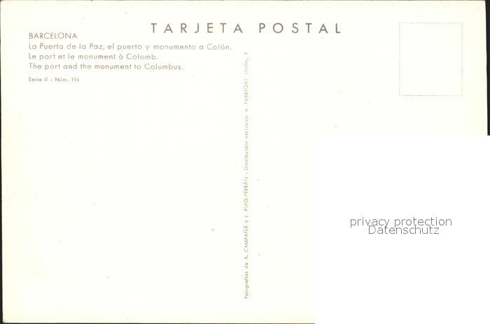 Barcelona Cataluna Port Monument Columbus postalisch nicht gelaufen Erhaltung siehe scans