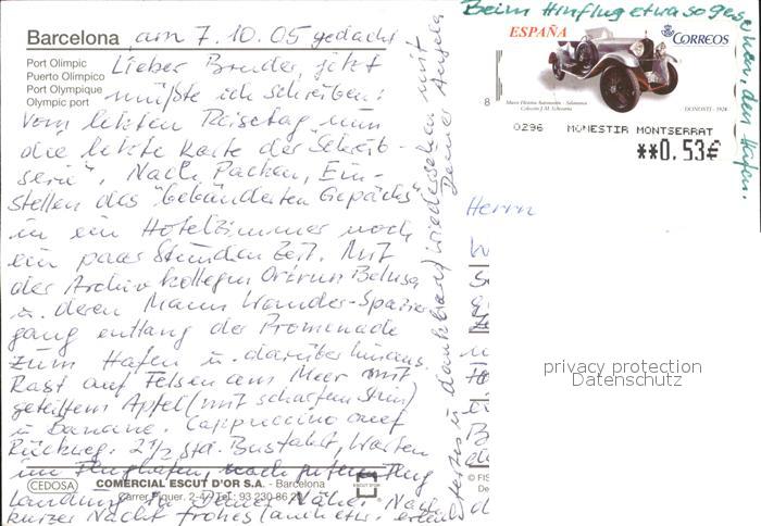 old postcard Barcelona Cataluna Port Olimpic postalisch gelaufen Erhaltung siehe scans