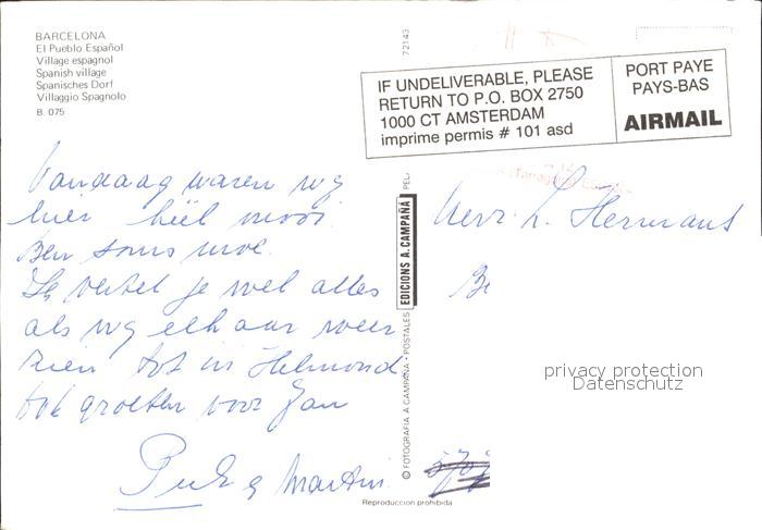 old postcard Barcelona Cataluna Pueble Espanol vista aerea postalisch gelaufen Erhaltung siehe scans