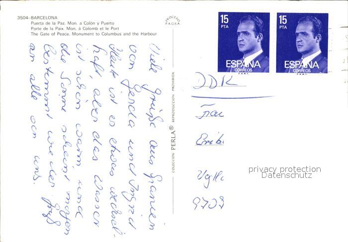 old postcard Barcelona Cataluna Puerta de la Paz postalisch gelaufen Erhaltung siehe scans