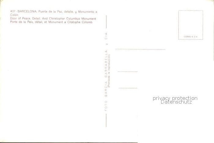 Barcelona Cataluna Puerta de la Paz Monumento Colon postalisch nicht gelaufen Erhaltung siehe scans