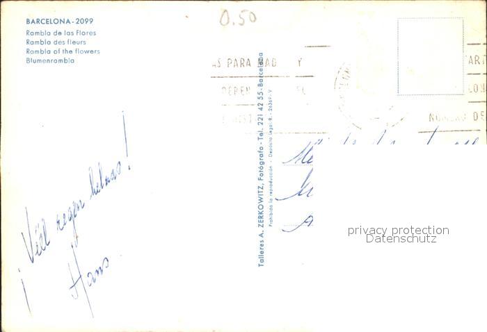 old postcard Barcelona Cataluna Rambla de los Flores postalisch gelaufen Erhaltung siehe scans
