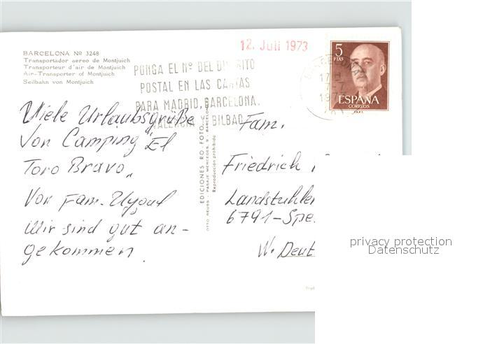 old postcard Barcelona Cataluna Seilbahn von Montjuich postalisch gelaufen Erhaltung siehe scans