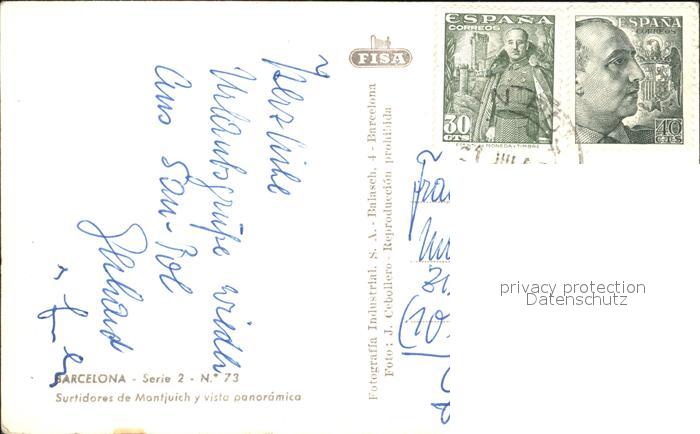 old postcard Barcelona Cataluna Surtidores de Montjuich y vista panoramica postalisch gelaufen Erhaltung siehe scans