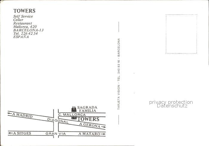 Barcelona Cataluna Towers Restaurant postalisch nicht gelaufen Erhaltung siehe scans