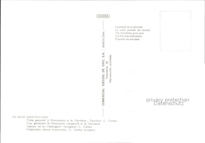 Barcelona Cataluna Vista general y Monumento a la Sardana postalisch nicht gelaufen Erhaltung siehe scans