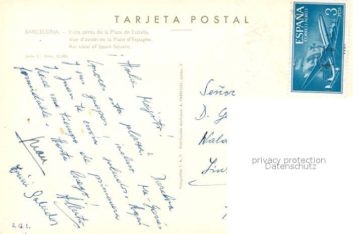 13285262 carte postale Barcelonne Fliegeraufnahme Plaza de Espana postalisch gelaufen Erhaltung siehe scans [NatalD47] KatCode: 11170026326024