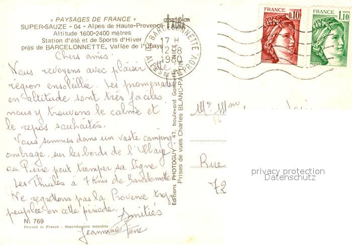 13593798 Barcelonnette Station d’ete de Sports d Hiver postalisch gelaufen Erhaltung siehe scans [WerneD78] carte postale Wern Katcode 11170004104019