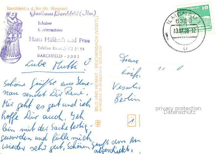 73335054 alte Postkarte Barchfeld Gasthaus postalisch gelaufen Erhaltung siehe scans [LiesaD40] KatCode: 11110016063004