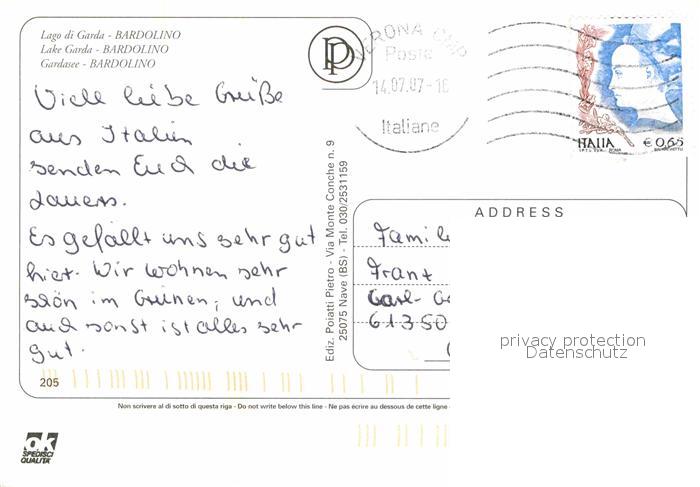 old postcard Bardolino Lago di Garda Fliegeraufnahme Hafen Pomenade postalisch gelaufen Erhaltung siehe scans [AndreD76]