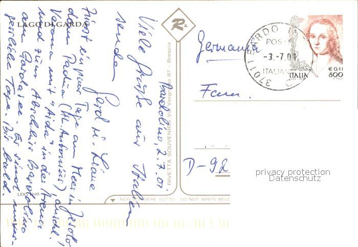 old postcard Bardolino Lago di Garda Hafen Strand Promenade Kirche Panorama postalisch gelaufen Erhaltung siehe scans