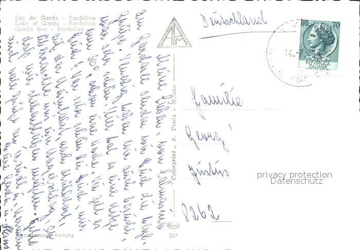 old postcard Bardolino Lago di Garda Kirche Fliegeraufnahme Strassenpartie postalisch gelaufen Erhaltung siehe scans
