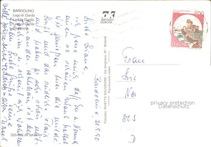 old postcard Bardolino Lago di Garda Lago di Garda Segelboot Kirche postalisch gelaufen Erhaltung siehe scans