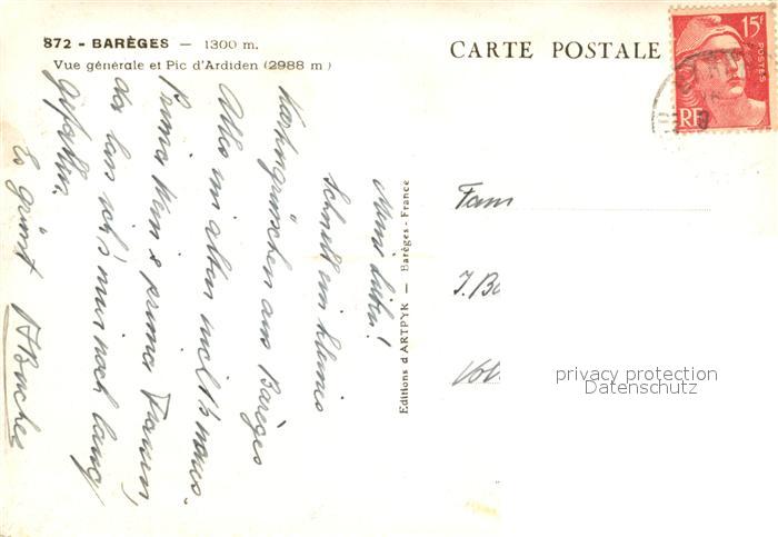 13288953 carte postale Bareges Panorama Pic d Ardiden postalisch gelaufen Erhaltung siehe scans [KathaD81] KatCode: 11170065165481