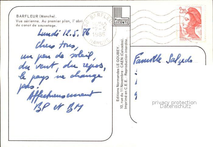 12234236 carte postale Barfleur Manche Fliegeraufnahme postalisch gelaufen Erhaltung siehe scans KatCode: 11170050250030