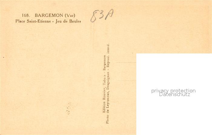 13621191 Bargemon Place Saint Etienne Jeu de Boules postalisch nicht gelaufen Erhaltung siehe scans [WerneD78] Wern Katcode 11170083183011