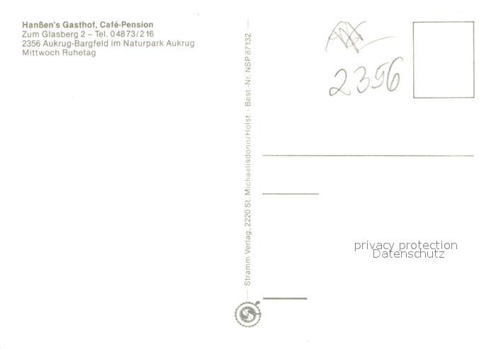 73664044 Bargfeld Rendsburg Han?ens Gasthof Bargfeld postalisch nicht gelaufen Erhaltung siehe scans [LiesaD40] KatCode: 11110001058009
