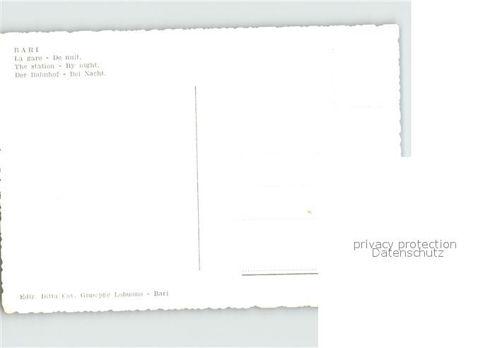 Bari Puglia Bahnhof postalisch nicht gelaufen Erhaltung siehe scans
