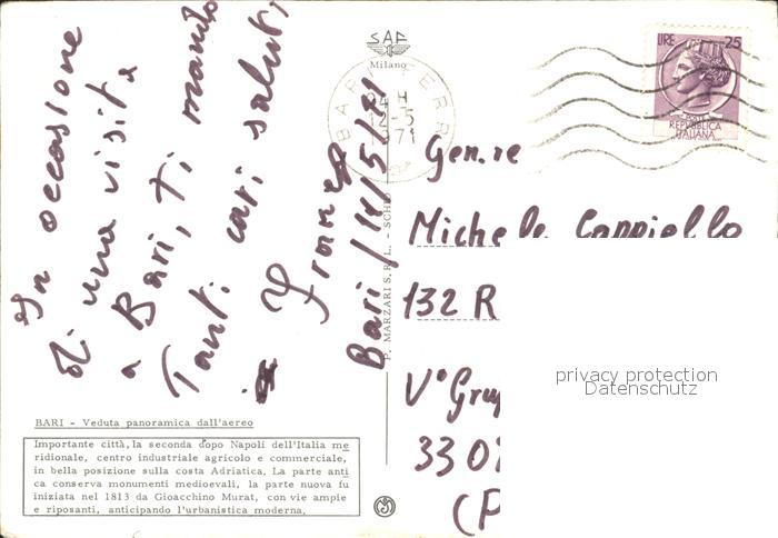 old postcard Bari Puglia Fliegeraufnahme postalisch gelaufen Erhaltung siehe scans