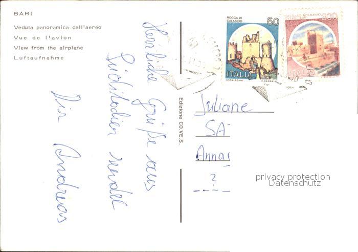 old postcard Bari Puglia Fliegeraufnahme postalisch gelaufen Erhaltung siehe scans