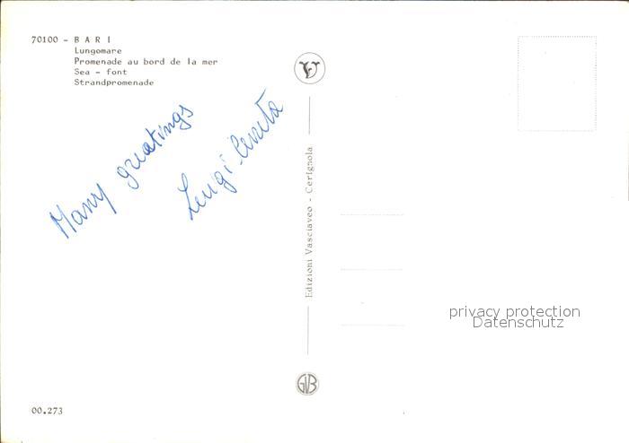Bari Puglia Lungomare Strandpromenade Segeln postalisch nicht gelaufen Erhaltung siehe scans