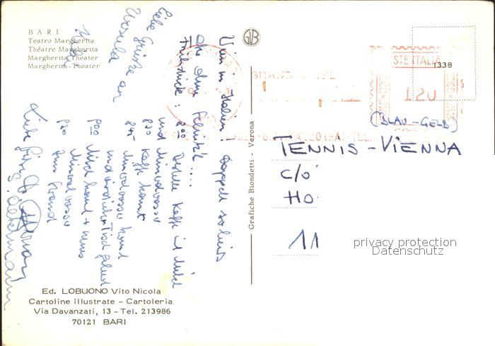 old postcard Bari Puglia Margherith Theater postalisch gelaufen Erhaltung siehe scans