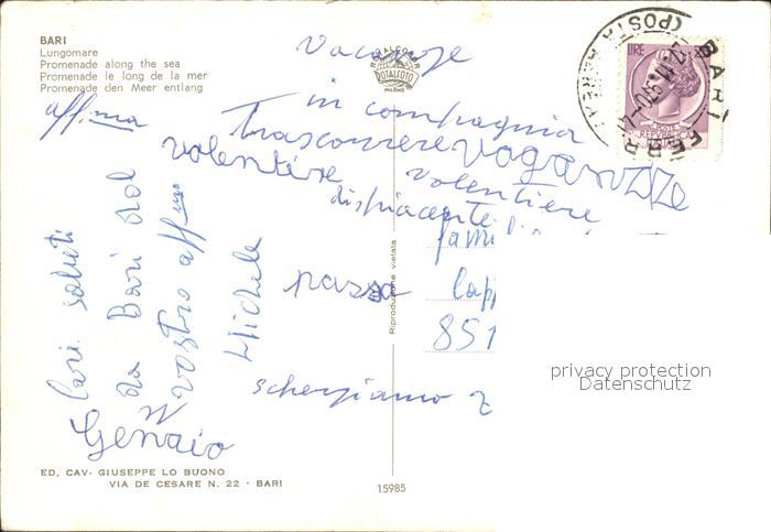 old postcard Bari Puglia Promenade postalisch gelaufen Erhaltung siehe scans