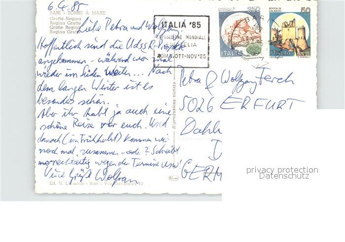 old postcard Bari Puglia Regina Grotte postalisch gelaufen Erhaltung siehe scans
