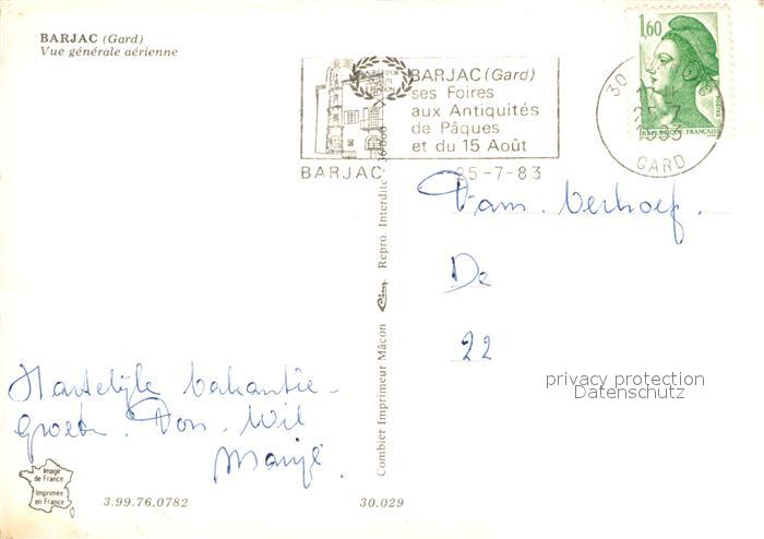 12974840 carte postale Barjac Gard Fliegeraufnahme postalisch gelaufen Erhaltung siehe scans [LiesaD40] KatCode: 11170030130029
