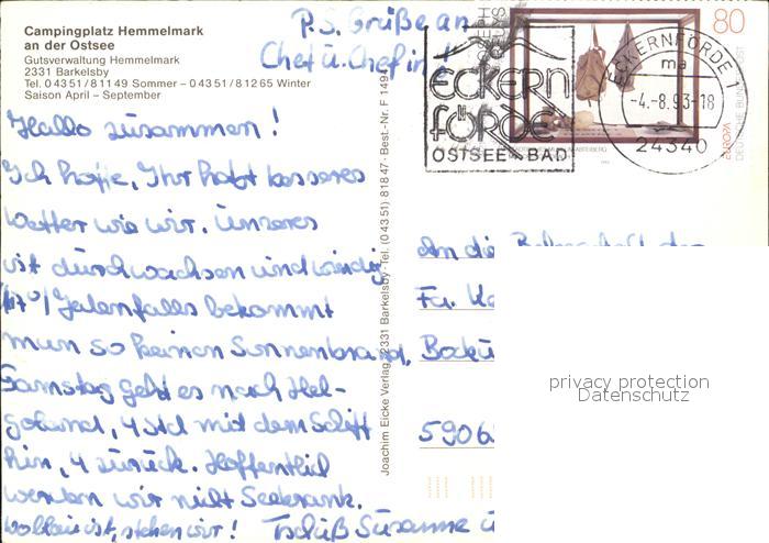 71972800 alte Postkarte Barkelsby Fliegeraufnahme Camping Hemmelmark postalisch gelaufen Erhaltung siehe scans KatCode: 11110001058012