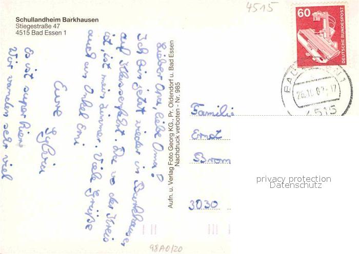 72912277 alte Postkarte Barkhausen Bad Essen Schullandheim Speisesaal Tischtennis Kirche postalisch gelaufen Erhaltung siehe scans [FriedD77] KatCode: 11110003459003