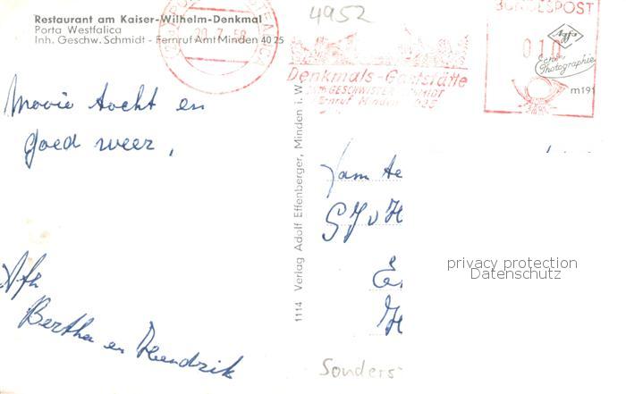 73851597 alte Postkarte Barkhausen Minden Restaurant am Kaiser Wilhelm Denkmal Panorama postalisch gelaufen Erhaltung siehe scans [WerneD78] KatCode: 11110005770024