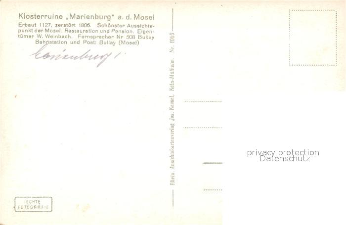 43507450 Barl Klosterruine Marienburg an der Mosel postalisch nicht gelaufen Erhaltung siehe scans [LiesaD40] KatCode: 11110007135092