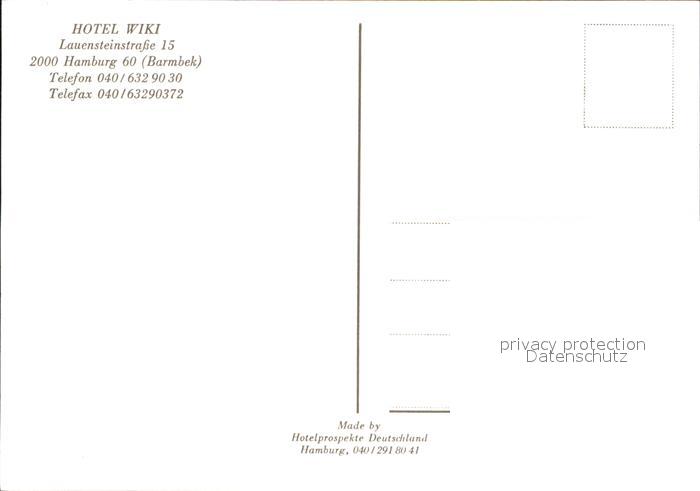 72577610 Barmbek Hotel Wiki Bar Restaurant postalisch nicht gelaufen Erhaltung siehe scans [FriedD77] KatCode: 11110002000000