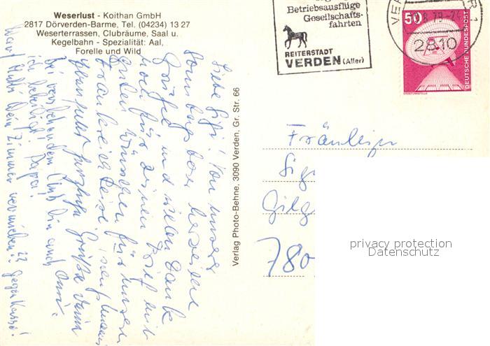73127332 alte Postkarte Barme Verden Restaurant Weserlust Terrasse postalisch gelaufen Erhaltung siehe scans [FriedD77] KatCode: 11110003361003