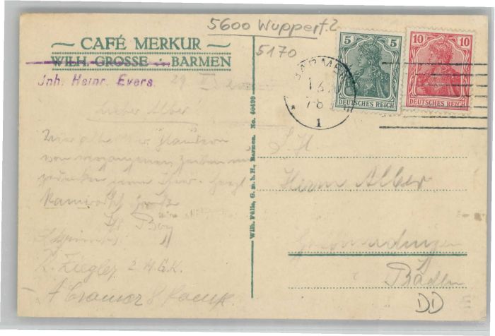 40689109 Barmen Wuppertal Cafe Merkur KatCode 11110005124000