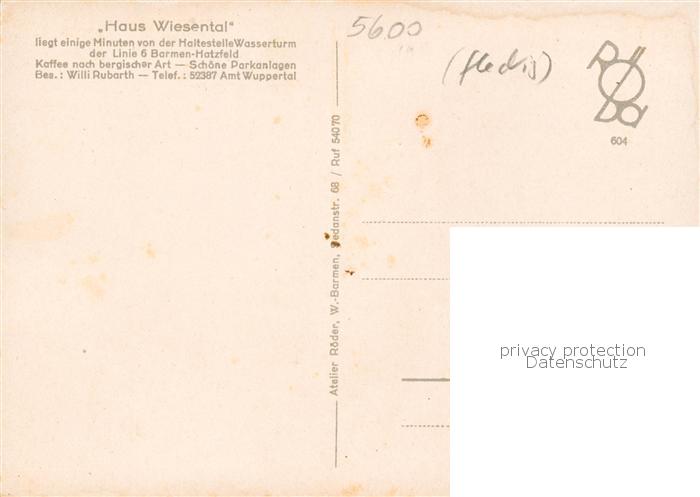 73854151 Barmen Wuppertal Haus Wiesental postalisch nicht gelaufen Erhaltung siehe scans [WerneD78] KatCode: 11110005124000