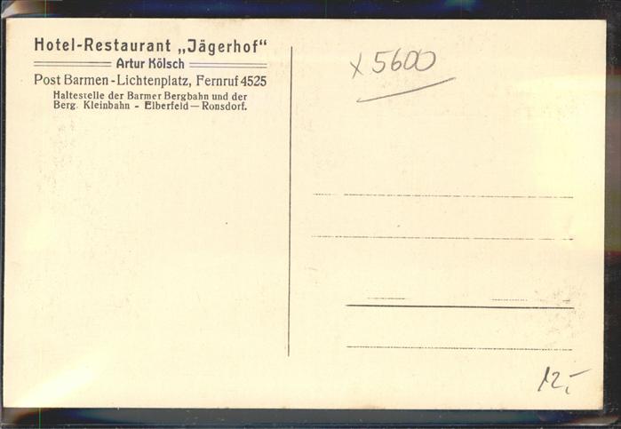 41386473 Barmen Wuppertal Jägerhof Hotel Restaurant Artur Kölsch KatCode 11110005124000