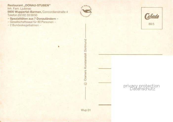 73780165 Barmen Wuppertal Restaurant Donau-Stuben postalisch nicht gelaufen Erhaltung siehe scans [FriedD77] KatCode: 11110005124000