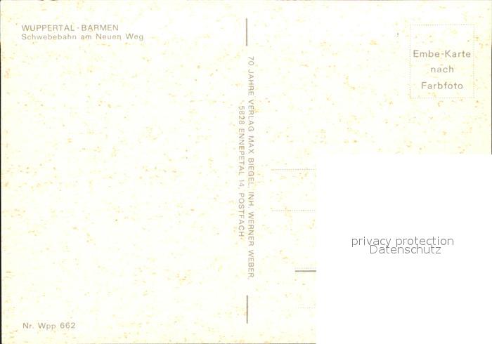71988168 Barmen Wuppertal Schwebebahn am Neuen Weg postalisch nicht gelaufen Erhaltung siehe scans KatCode: 11110005124000