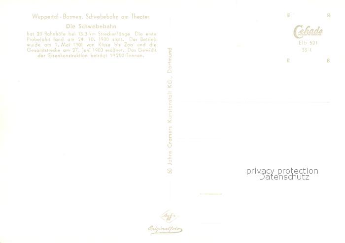 73833861 Barmen Wuppertal Schwebebahn am Theater postalisch nicht gelaufen Erhaltung siehe scans [FriedD77] KatCode: 11110005124000